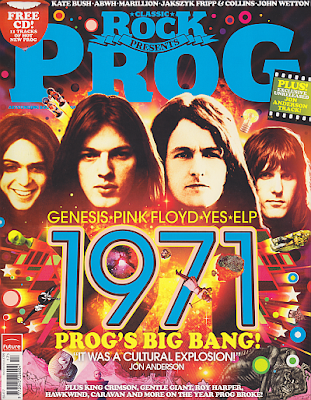 Issue 17 of, "Classic Rock Presents Prog", is in the shops today (priced at £7.99). The front cover revisits the year 1971 - PROG'S BIG BANG (Genesis, Yes, Pink Floyd, ELP). "It was a cultural explosion", says Jon Anderson. This issue also features Kate Bush, ABWH, Marillion, Jakszyk & Collins, John Wetton, King Crimson, Gentle Giant, Roy Harper, Hawkwind, Caravan, UK, Can, HP Lovecraft, Dream Theater, Blackfield, Jan Akkerman, Tinyfish, Da